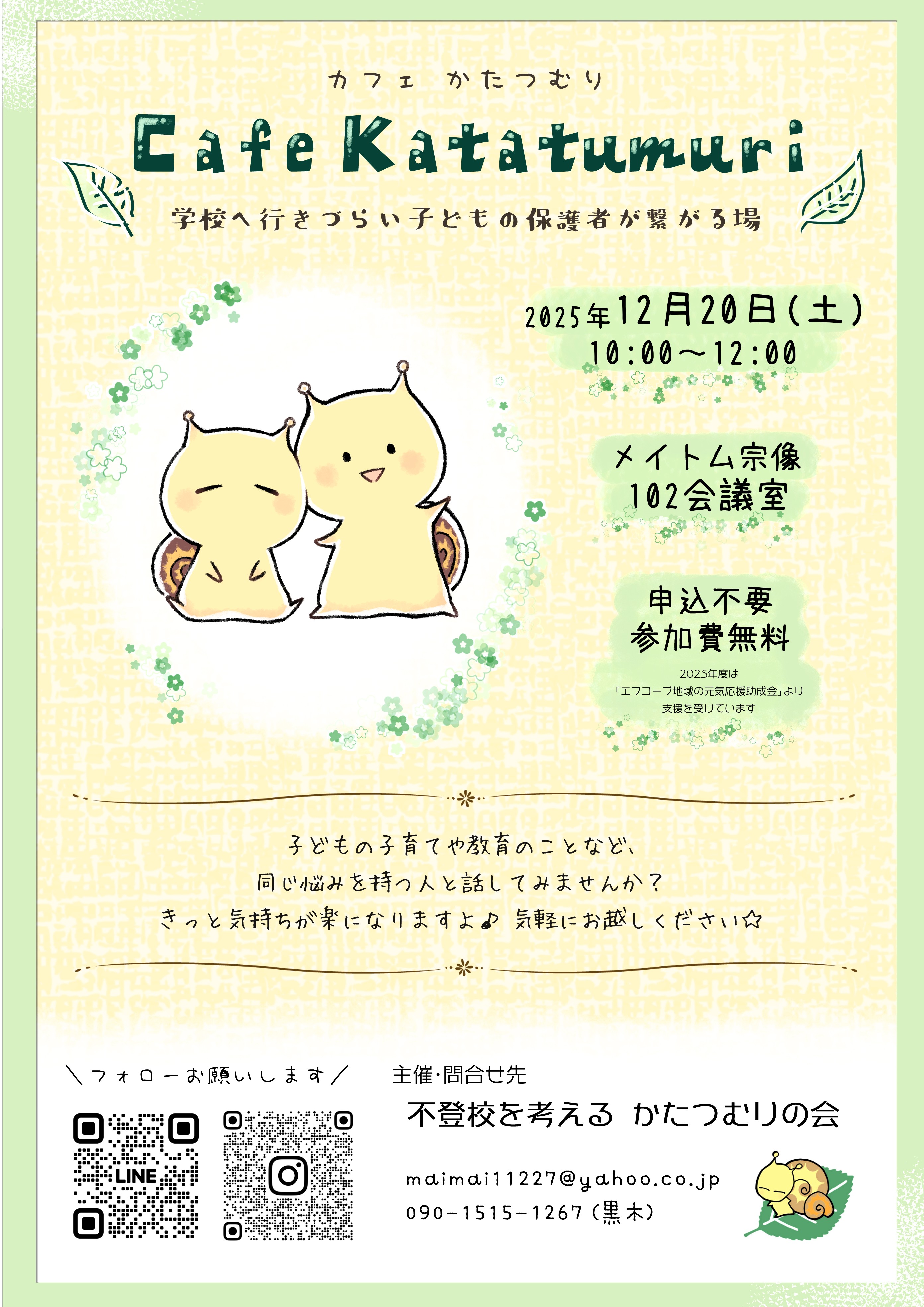 【12/20】不登校を考える“かたつむりの会” 「カフェかたつむり」のお知らせ