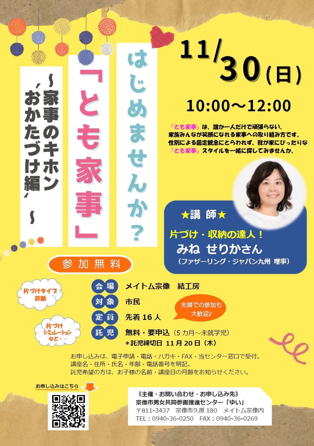 【締切間近!11/30】はじめませんか?「とも家事」~家事のキホン‘おかたづけ編’~