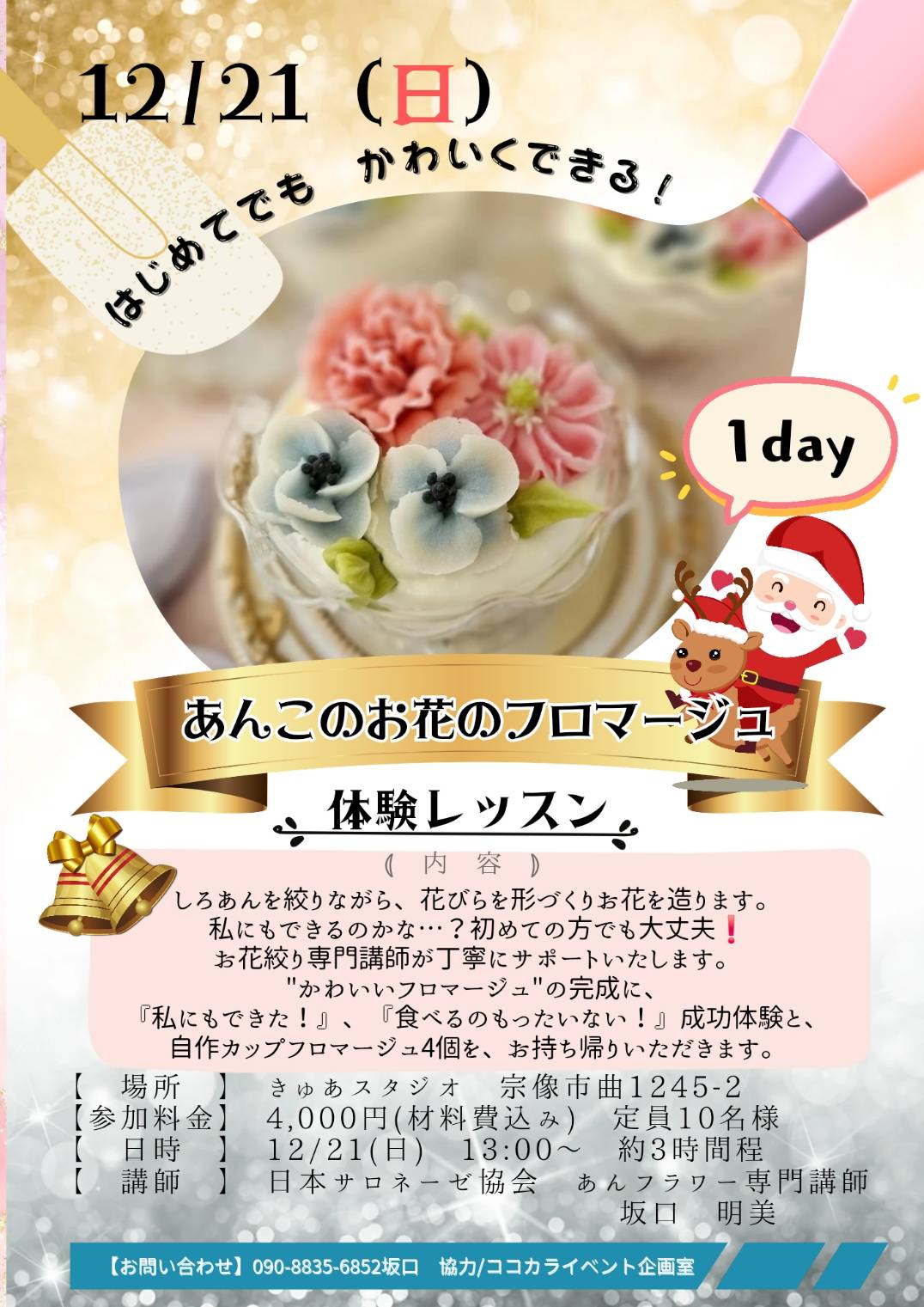 《内容》あんフラワー専門講師がレクチャーしながら一緒に調理し、あんこでお花をかたちづくりながら盛り付け。カップフロマージュ4個をお持ち帰りいただきます。