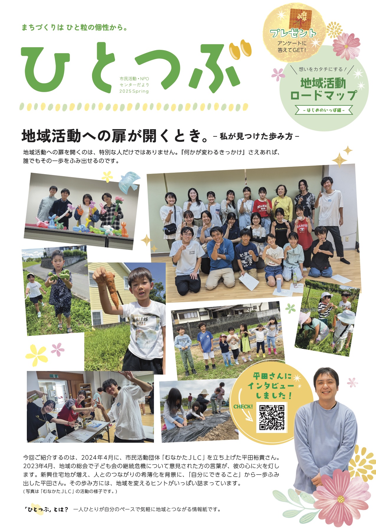 市民活動・NPOセンターだより『ひとつぶ』(2025 Spring号)の表面に掲載されています。